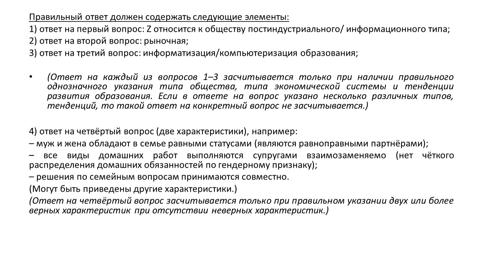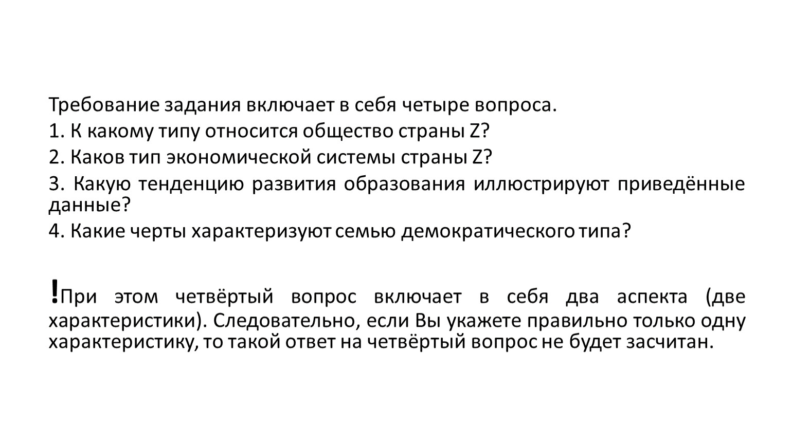 !При этом четвёртый вопрос включает в себя два аспекта (две характеристики). Следовательно, если Вы укажете правильно только одну характеристику, то такой ответ на четвёртый вопрос не будет засчитан.