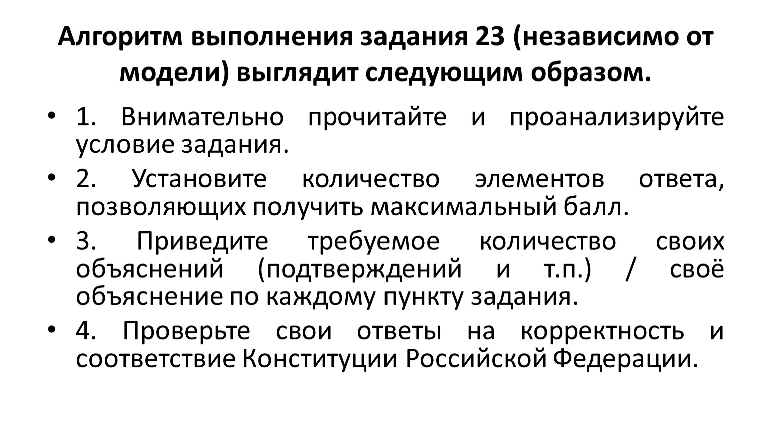 4. Проверьте свои ответы на корректность и соответствие Конституции Российской Федерации.