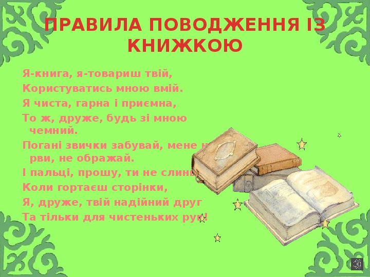 Пропонується презентація для дітей дошкільного віку та їхніх батьків "Як книжка до нас прийшла. Презентація містить цікавий, пізнавальний, інформаційний матеріал який має на меті дати знання про професії людей, які працюють над створенням книги, закріпити знання дітей про правила користування книгою,Презентація має на меті поповнити та закріпити знання дітей про створення книги, правила користування книгою, з яких частин складається книга; ознайомити дітей з професіями людей, які беруть участь у виготовленні книжок; прищеплювати любов до книги за допомогою загадок, прислів’їв; виховувати бережливе ставлення та бажання берегти книги.