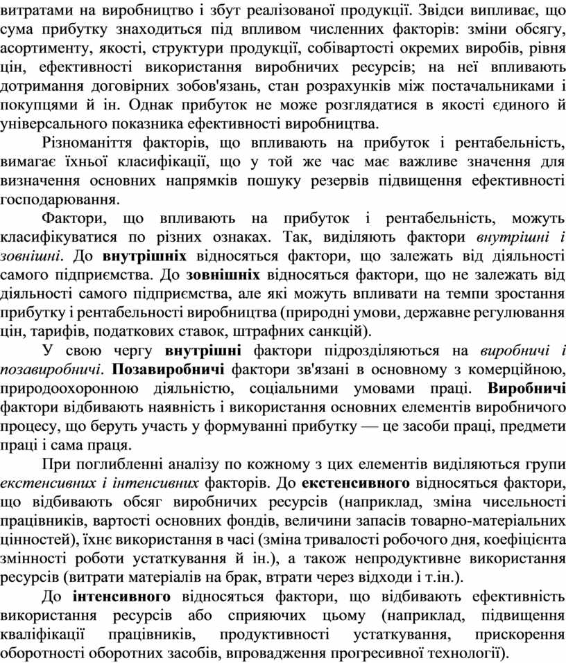 Різноманіття факторів, що впливають на прибуток і рентабельність, вимагає їхньої класифікації, що у той же час має важливе значення для визначення основних напрямків пошуку резервів підвищення ефективності господарювання.