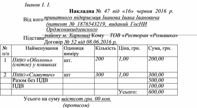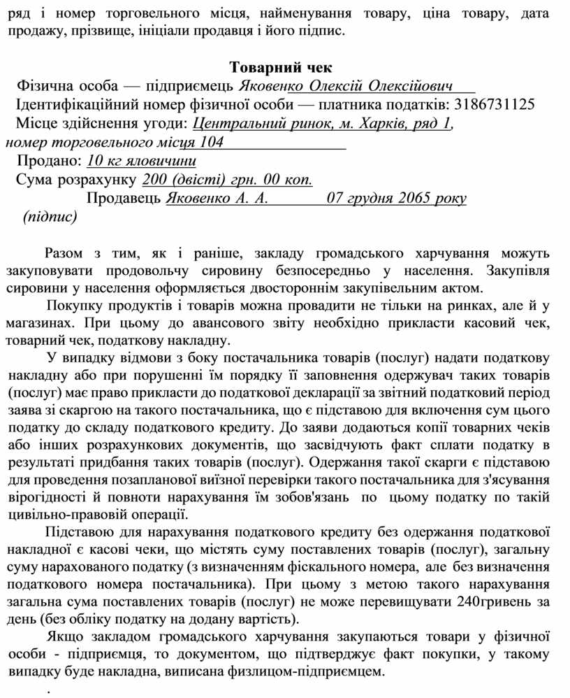 Якщо закладом громадського харчування закупаються товари у фізичної особи - підприємця, то документом, що підтверджує факт покупки, у такому випадку буде накладна, виписана физлицом-підприємцем.