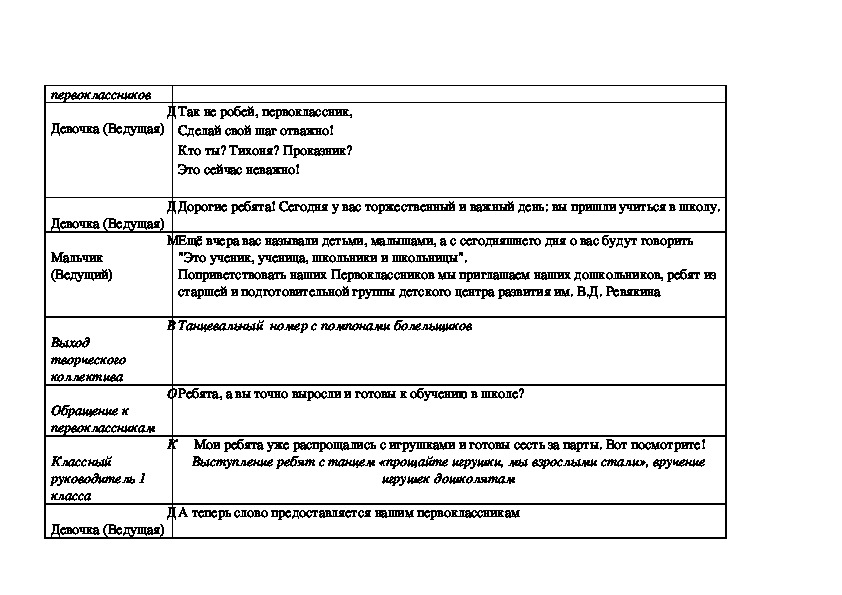 Девочка (Ведущая) Первый класс здесь! Ребята с нетерпением ждут, когда их пригласят на первую линейку,