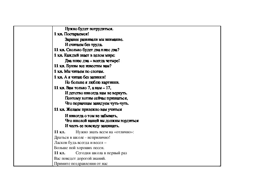 Тогда прошу 11 класс передать эстафету 1 классу, вручите каждому первокласснику