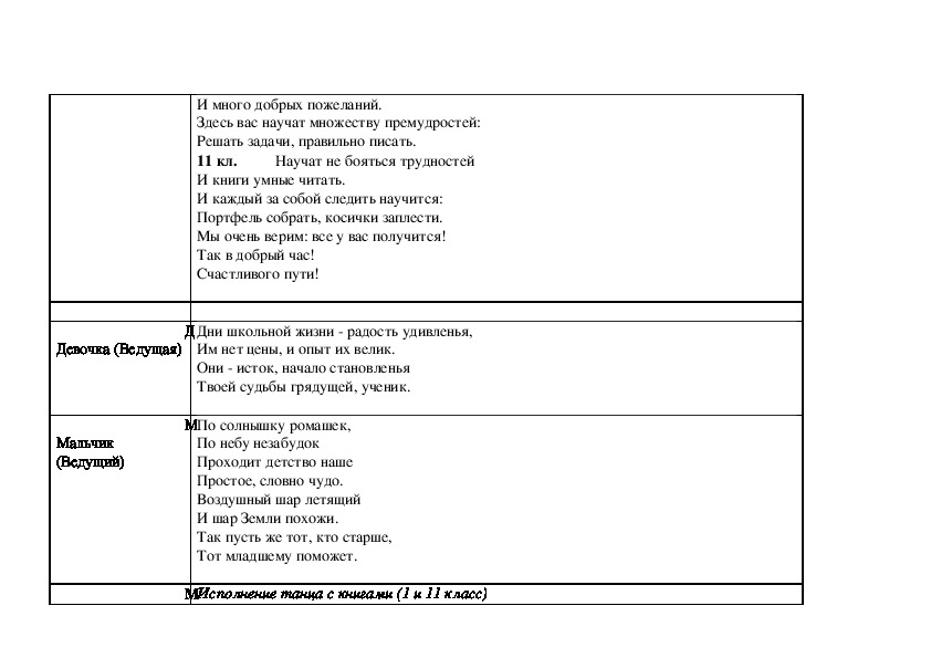 Право дать первый звонок предоставляется ученице 1 класса и ученику 11 класса...