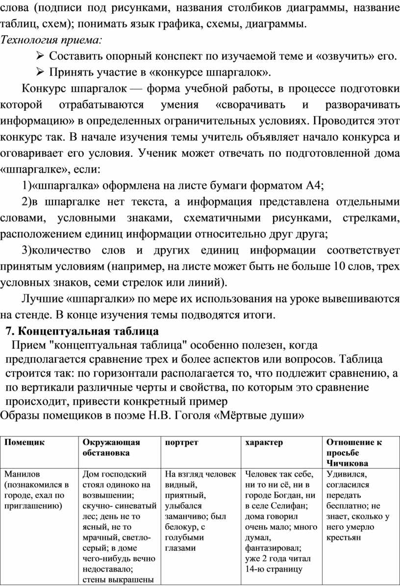 6. Приём «Опорный конспект» или «Конкурс шпаргалок»