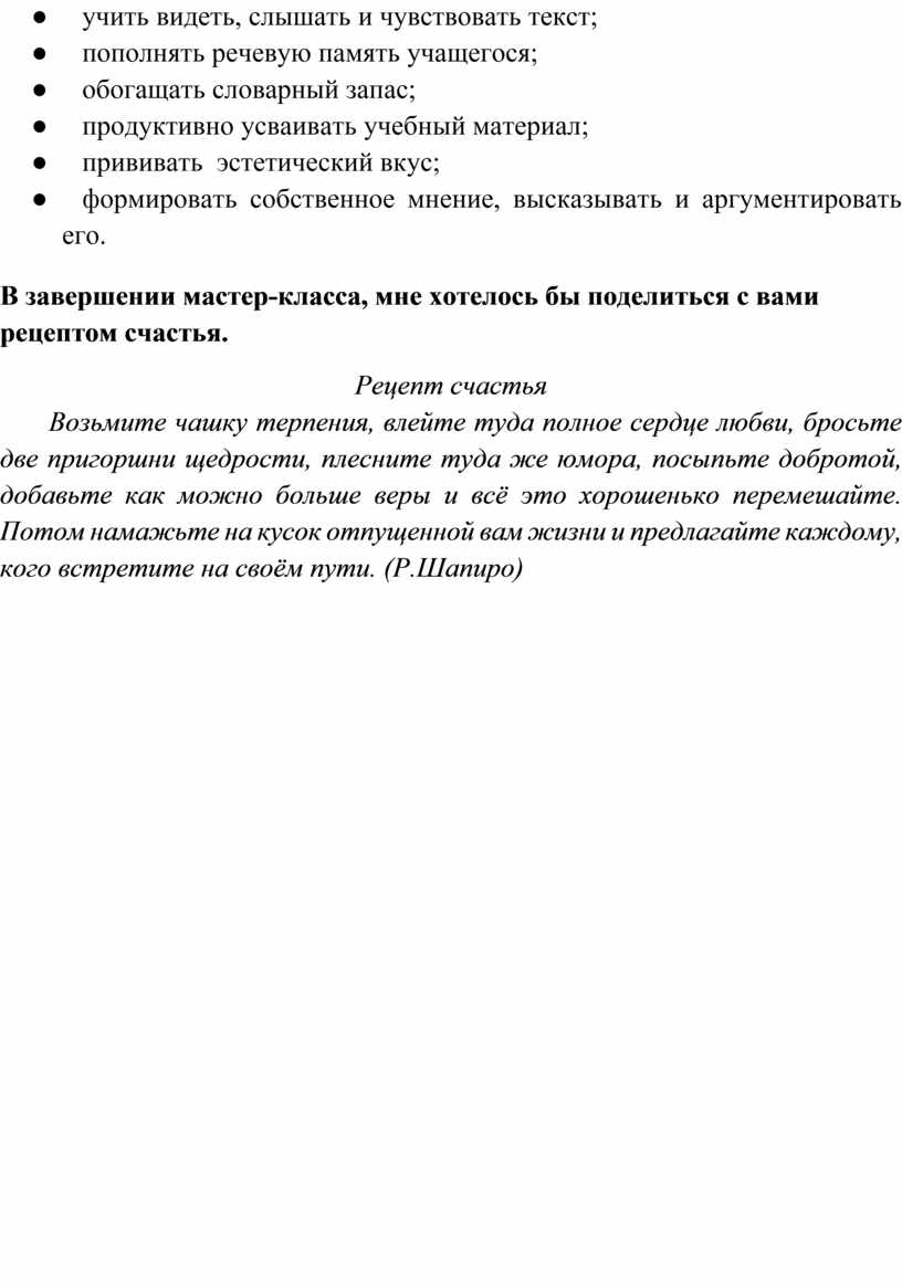 В завершении мастер-класса, мне хотелось бы поделиться с вами рецептом счастья.