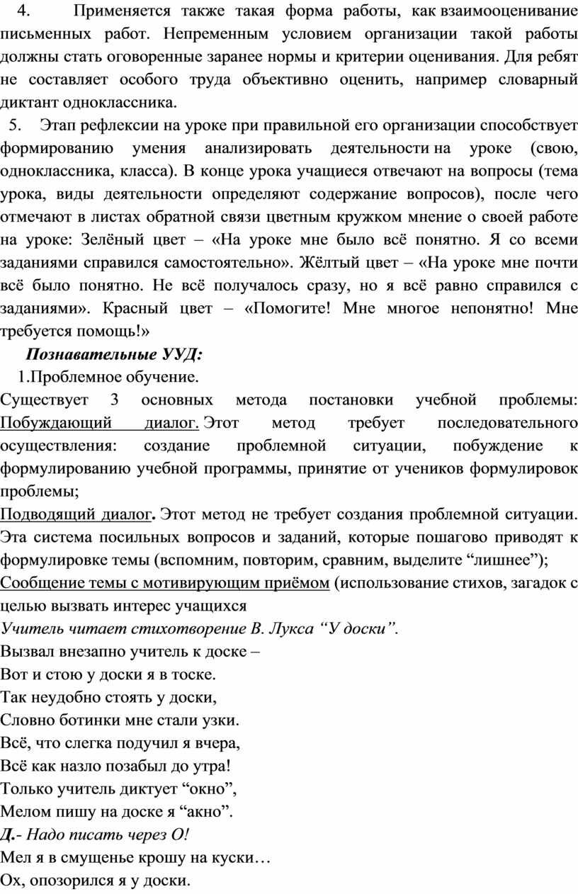 5. Этап рефлексии на уроке при правильной его организации способствует формированию умения анализировать деятельности на уроке (свою, одноклассника, класса). В конце урока учащиеся отвечают на вопросы (тема урока, виды деятельности определяют содержание вопросов), после чего отмечают в листах обратной связи цветным кружком мнение о своей работе на уроке: Зелёный цвет – «На уроке мне было всё понятно. Я со всеми заданиями справился самостоятельно». Жёлтый цвет – «На уроке мне почти всё было понятно. Не всё получалось сразу, но я всё равно справился с заданиями». Красный цвет – «Помогите! Мне многое непонятно! Мне требуется помощь!»