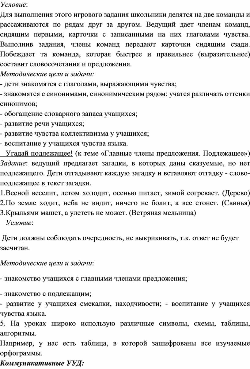 Подобные приемы, применяемые на уроках русского языка и литературного чтения в начальной школе, удовлетворяют потребность в творчестве учащихся, развивают способность к лаконичному изложению мыслей в устной и письменной форме, активизируют мыслительную деятельность учащихся и, в общем, способствуют формированию различных компетенций.
