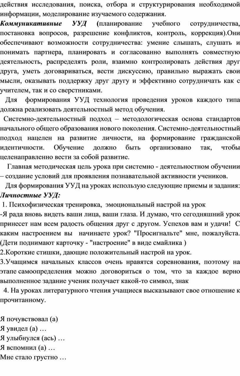 Для формирования УУД технология проведения уроков каждого типа должна реализовать деятельностный метод обучения.