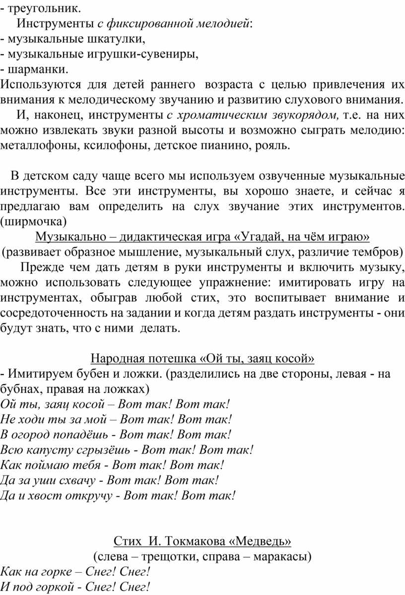 (развивает образное мышление, музыкальный слух, различие тембров)