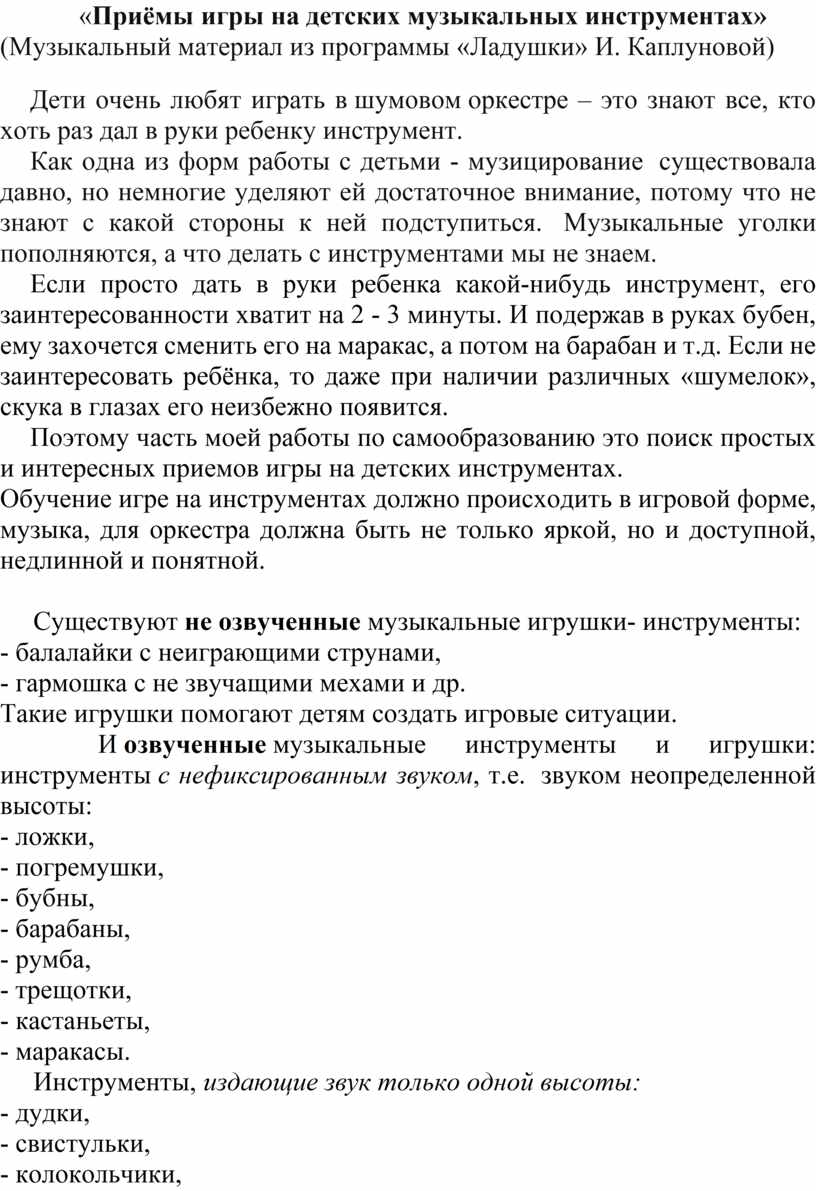 Поэтому часть моей работы по самообразованию это поиск простых и интересных приемов игры на детских инструментах.