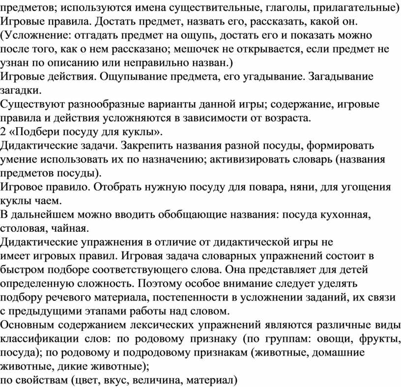 работы. Словарные игры проводятся с игрушками, предметами, картинками
