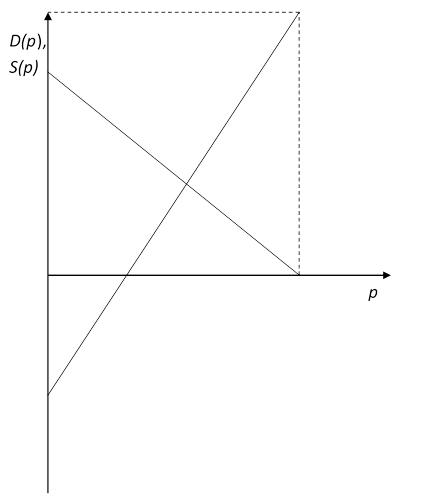 Визначити залежність попиту D(p)=10 - p та пропозиції S(p)=-5+2p від ціни p.