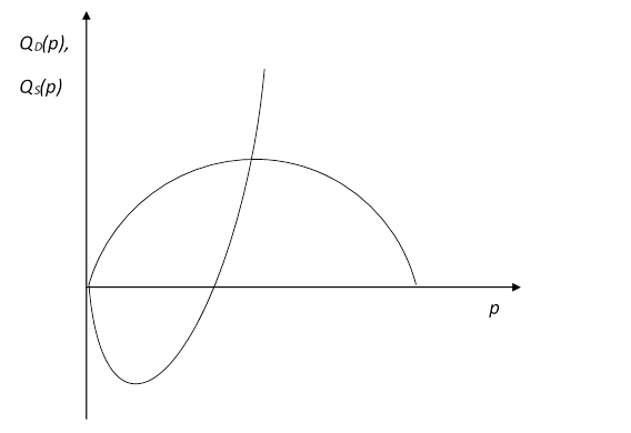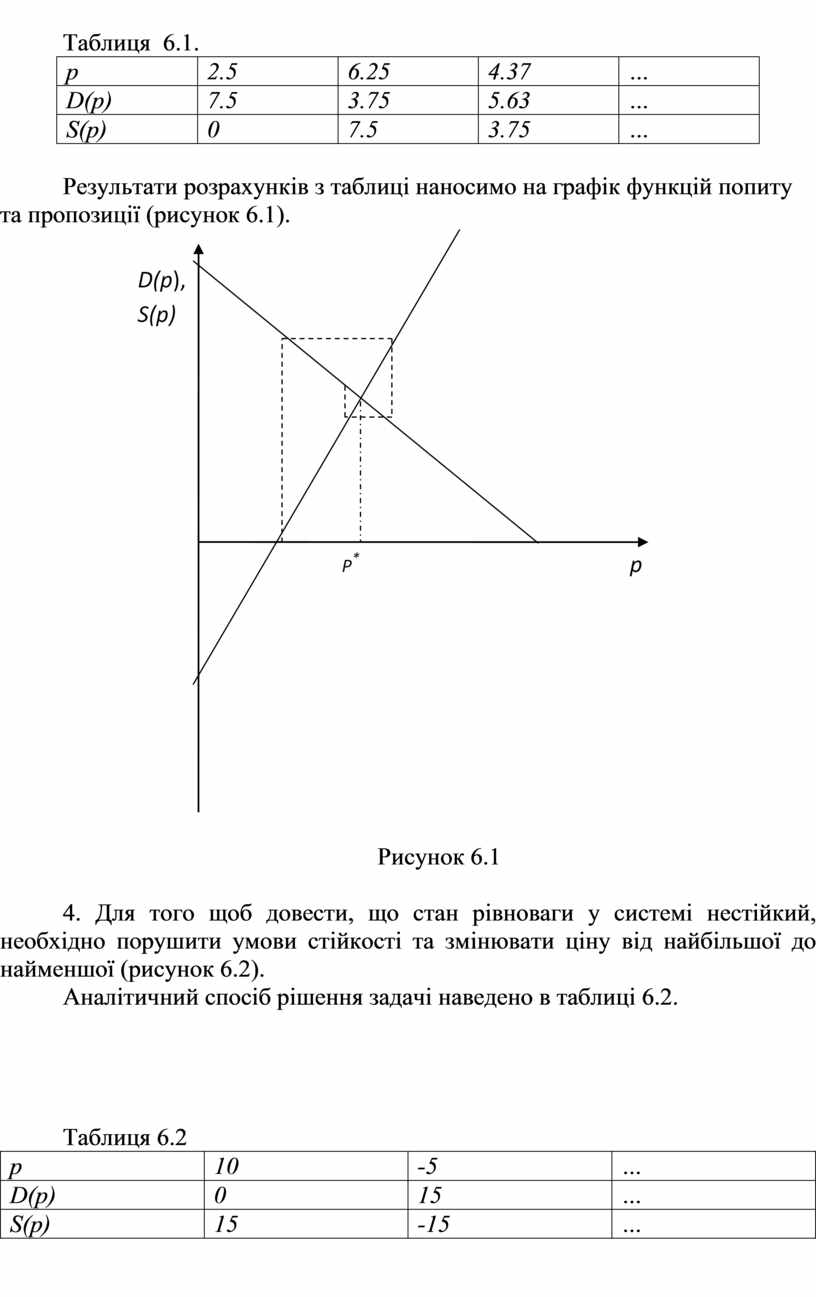 4. Доказати аналітичним та графічним способами, що стан рівноваги для функцій попиту та пропозиції нестійкий за умови невиконання п.2.