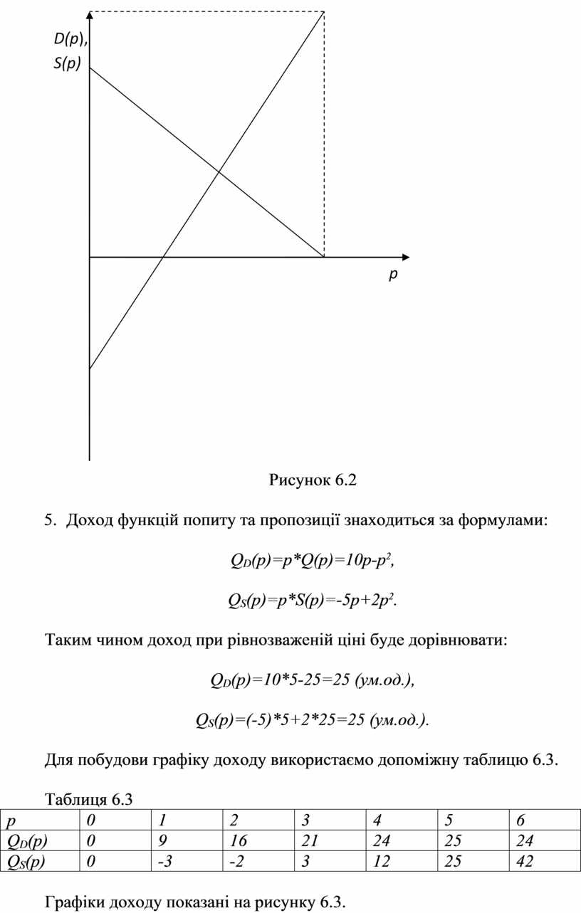 5. Доход функцій попиту та пропозиції знаходиться за формулами:
