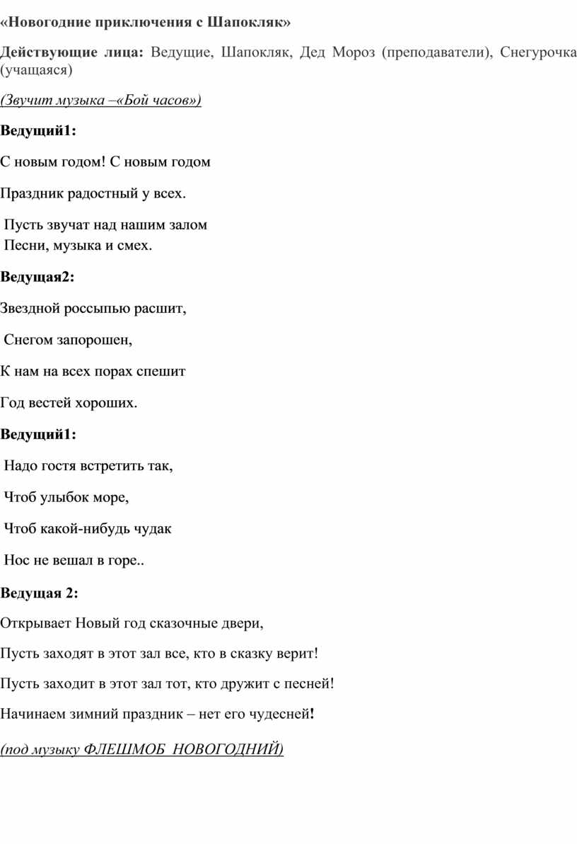Действующие лица: Ведущие, Шапокляк, Дед Мороз (преподаватели), Снегурочка (учащаяся)