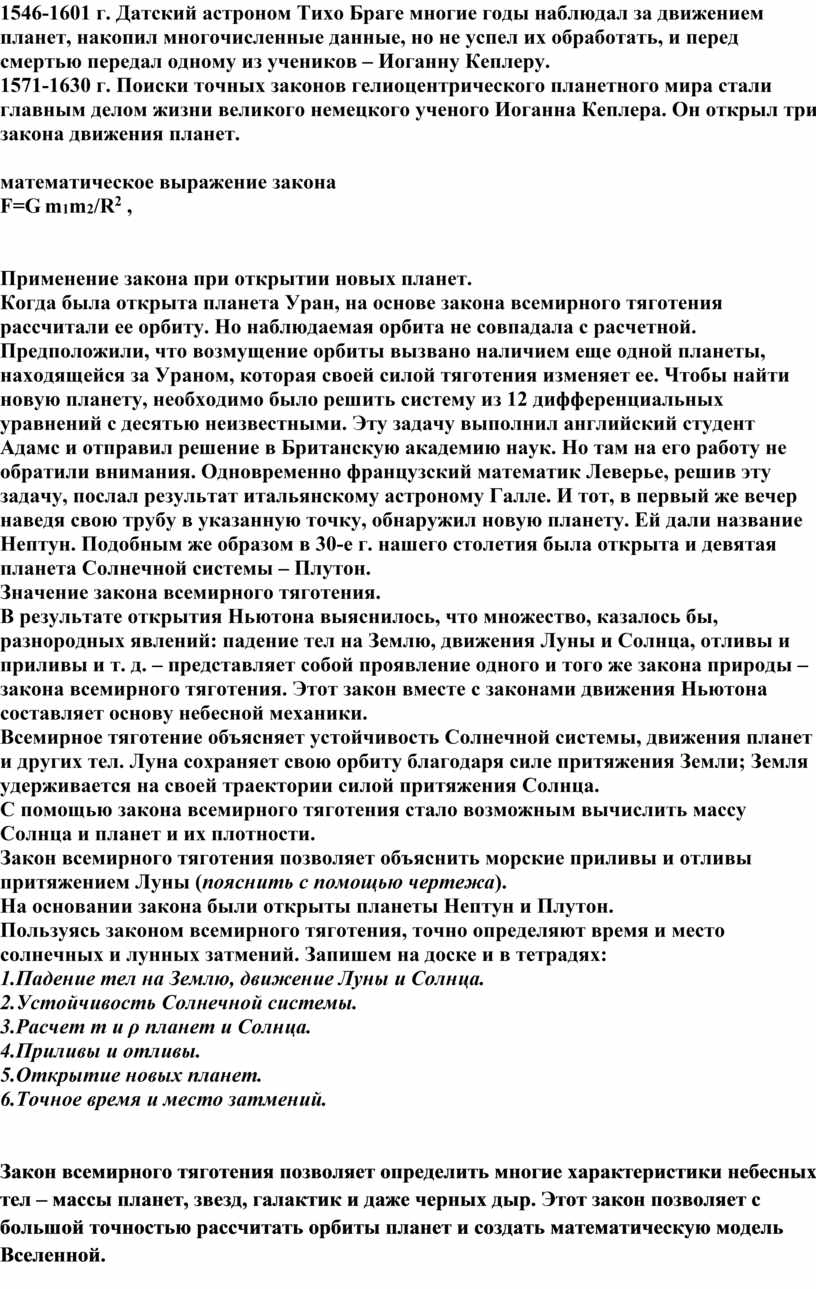 Пользуясь законом всемирного тяготения, точно определяют время и место солнечных и лунных затмений. Запишем на доске и в тетрадях: