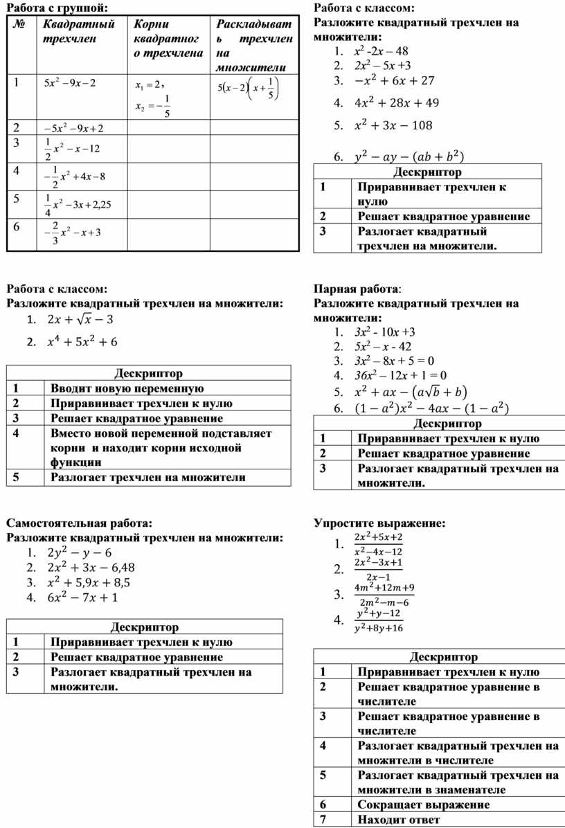 Работа с классом: Разложите квадратный трехчлен на множители: 1.