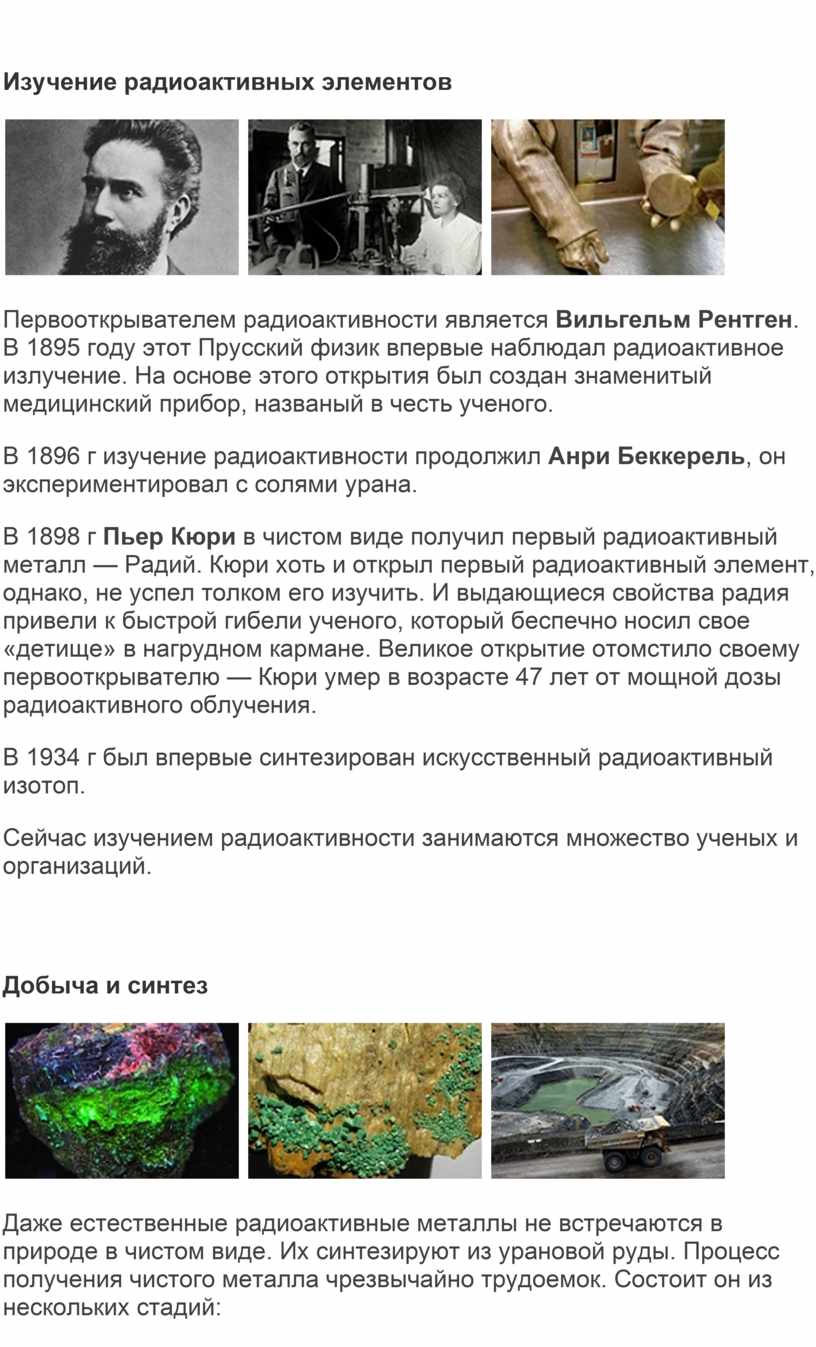 Даже естественные радиоактивные металлы не встречаются в природе в чистом виде. Их синтезируют из урановой руды. Процесс получения чистого металла чрезвычайно трудоемок. Состоит он из нескольких стадий: