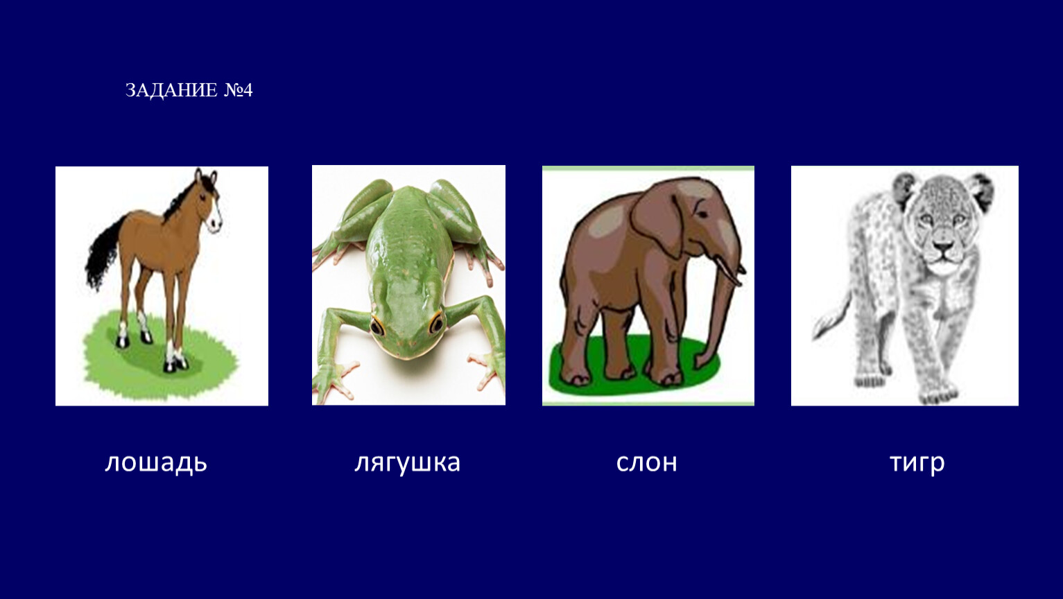 лошадь лягушка слон тигр