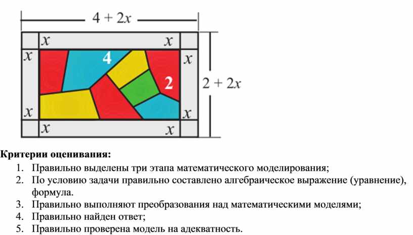 Дизайнер хочет по краям окна вида шебеке сделать рамку из простого стекла. Найдите ширину рамки, если размеры окна шебеке 2 м и 4 м, площадь рамки из простого стекла 7м2.