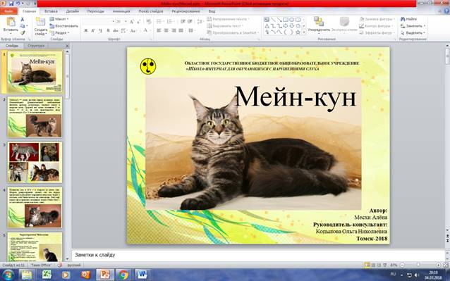 презентационного материала в рамках проекта: «Этот милый Мурлыка!», под
