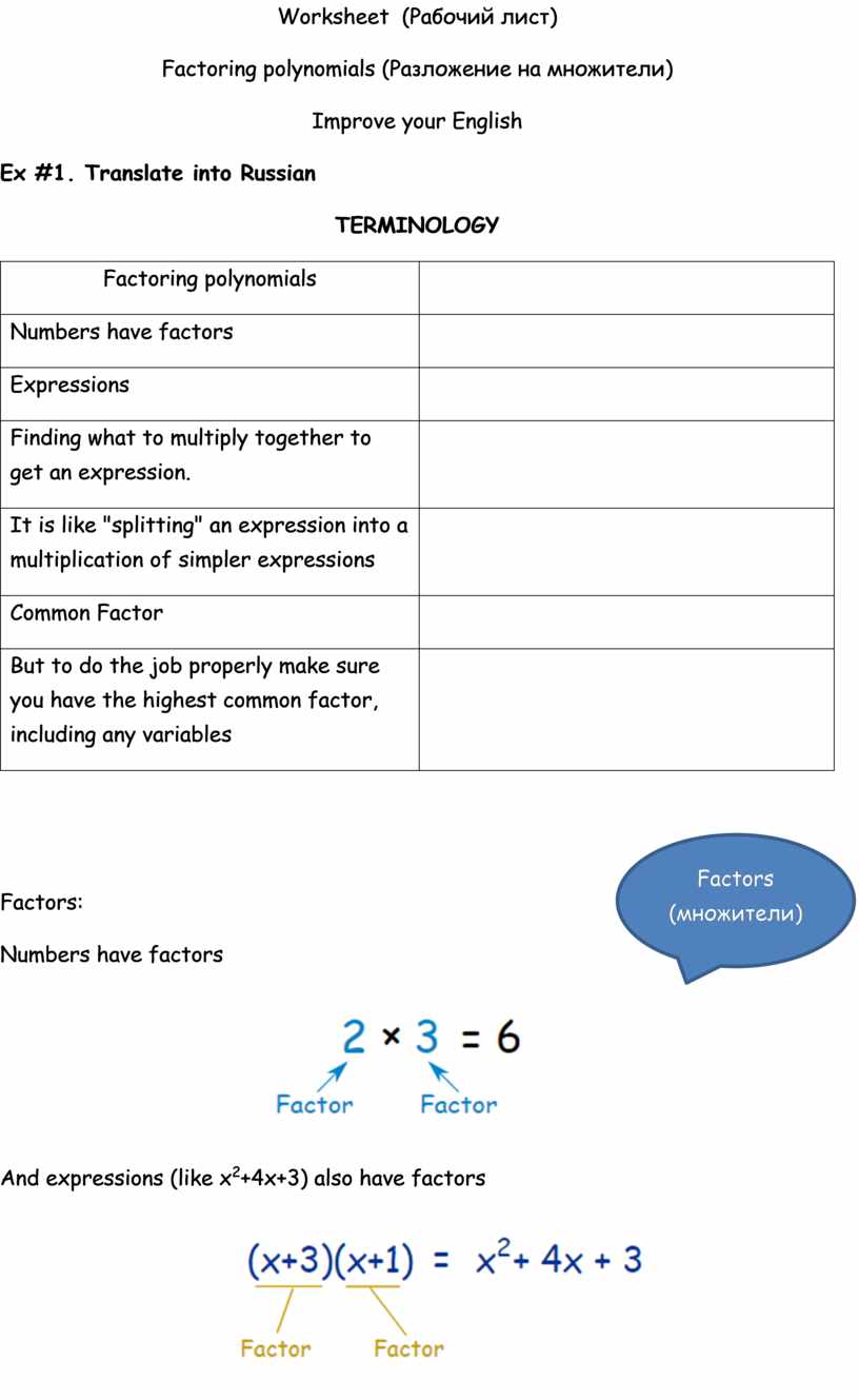 Factoring polynomials (Разложение на множители)