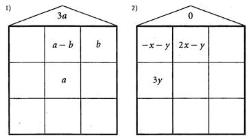 Запишите в клетки каждого квадрата такие выражения, чтобы их сумма в каждом столбце, каждой строке и каждой диагонали была равной «магическому» выражению, записанному в треугольник.