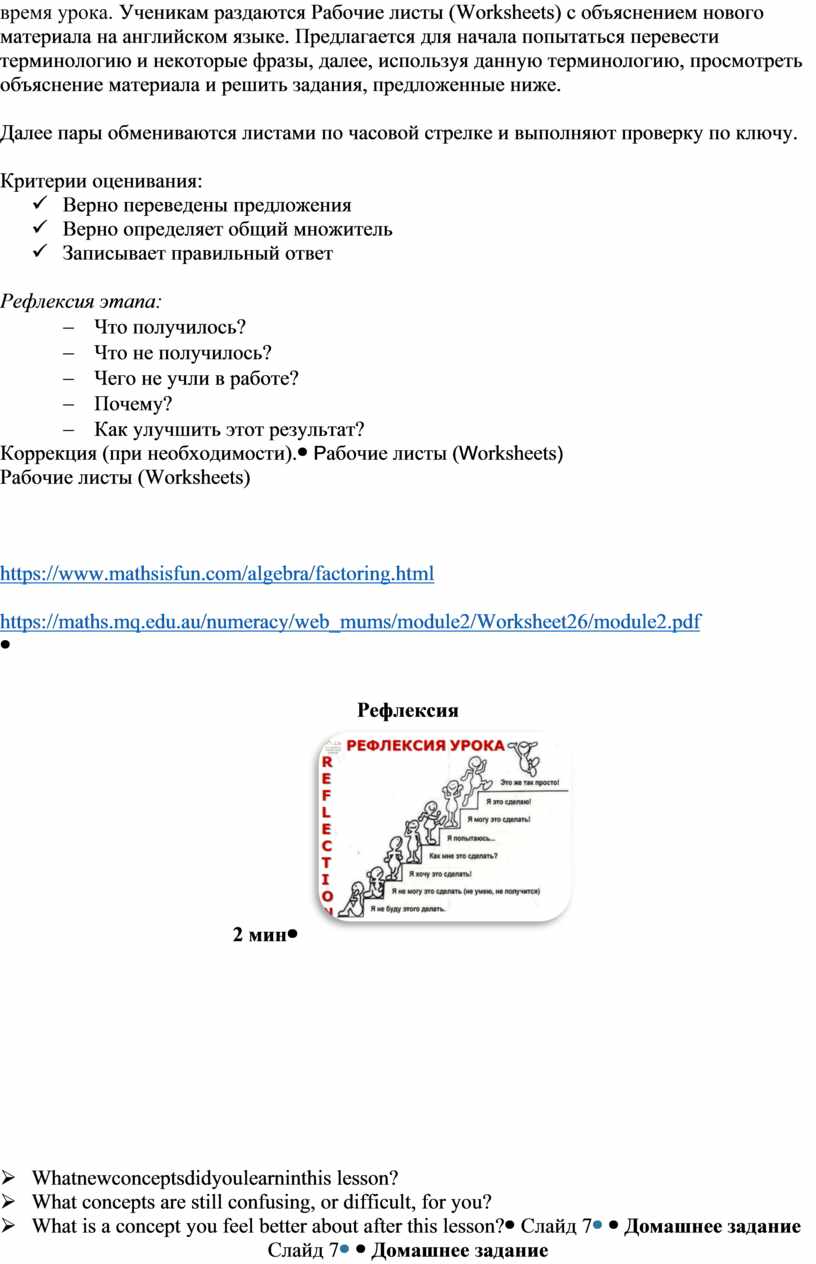 Критерии оценивания: ü Верно переведены предложения ü Верно определяет общий множитель ü Записывает правильный ответ