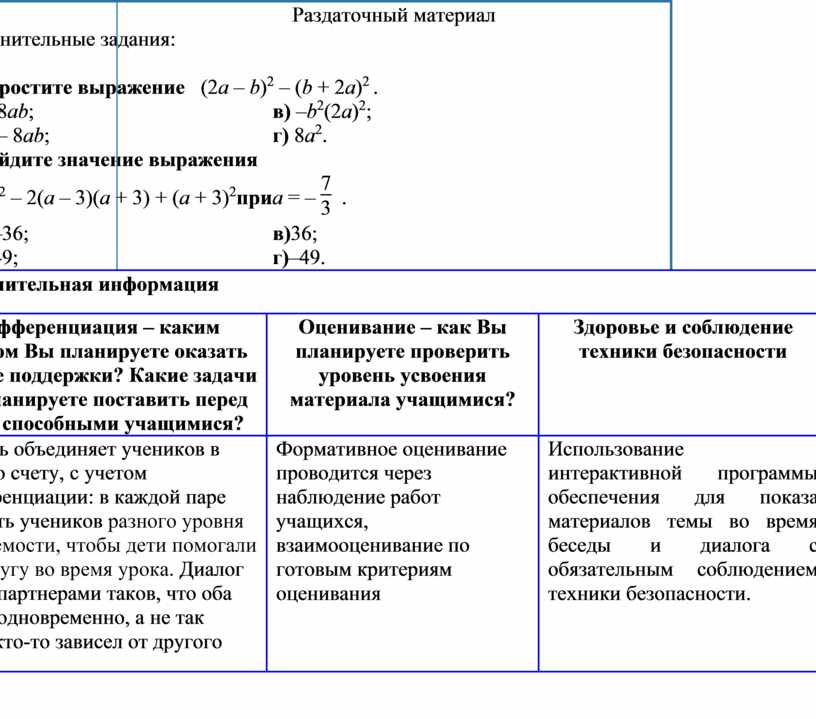 7.2.1.14 раскладывать алгебраические выражения на множители с помощью формул сокращённого умножения