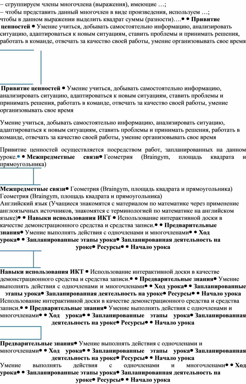 Умение учиться, добывать самостоятельно информацию, анализировать ситуацию, адаптироваться к новым ситуациям, ставить проблемы и принимать решения, работать в команде, отвечать за качество своей работы, умение организовывать свое время Привитие ценностей осуществляется посредством работ, запланированных на данном уроке. |