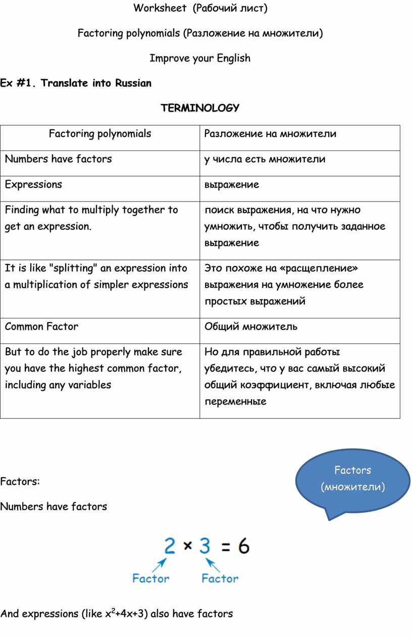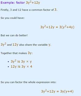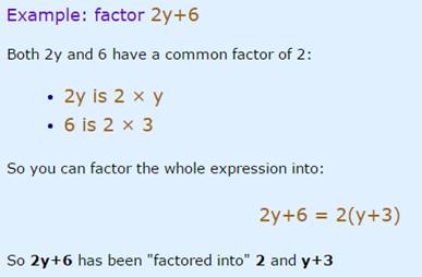 Factor In the previous example we saw that 2y and 6 had a common factor of 2.