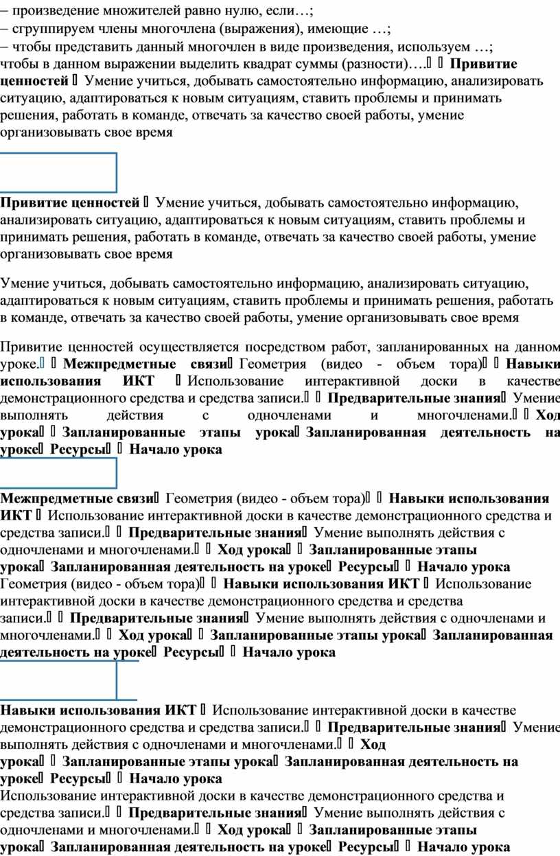 Умение учиться, добывать самостоятельно информацию, анализировать ситуацию, адаптироваться к новым ситуациям, ставить проблемы и принимать решения, работать в команде, отвечать за качество своей работы, умение организовывать свое время Привитие ценностей осуществляется посредством работ, запланированных на данном уроке. |