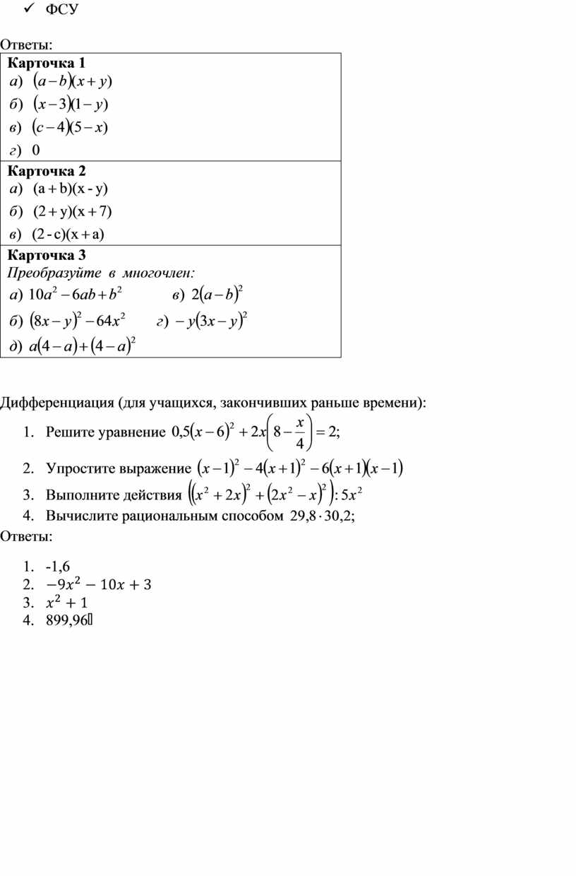 Дифференциация (для учащихся, закончивших раньше времени): 1. Решите уравнение