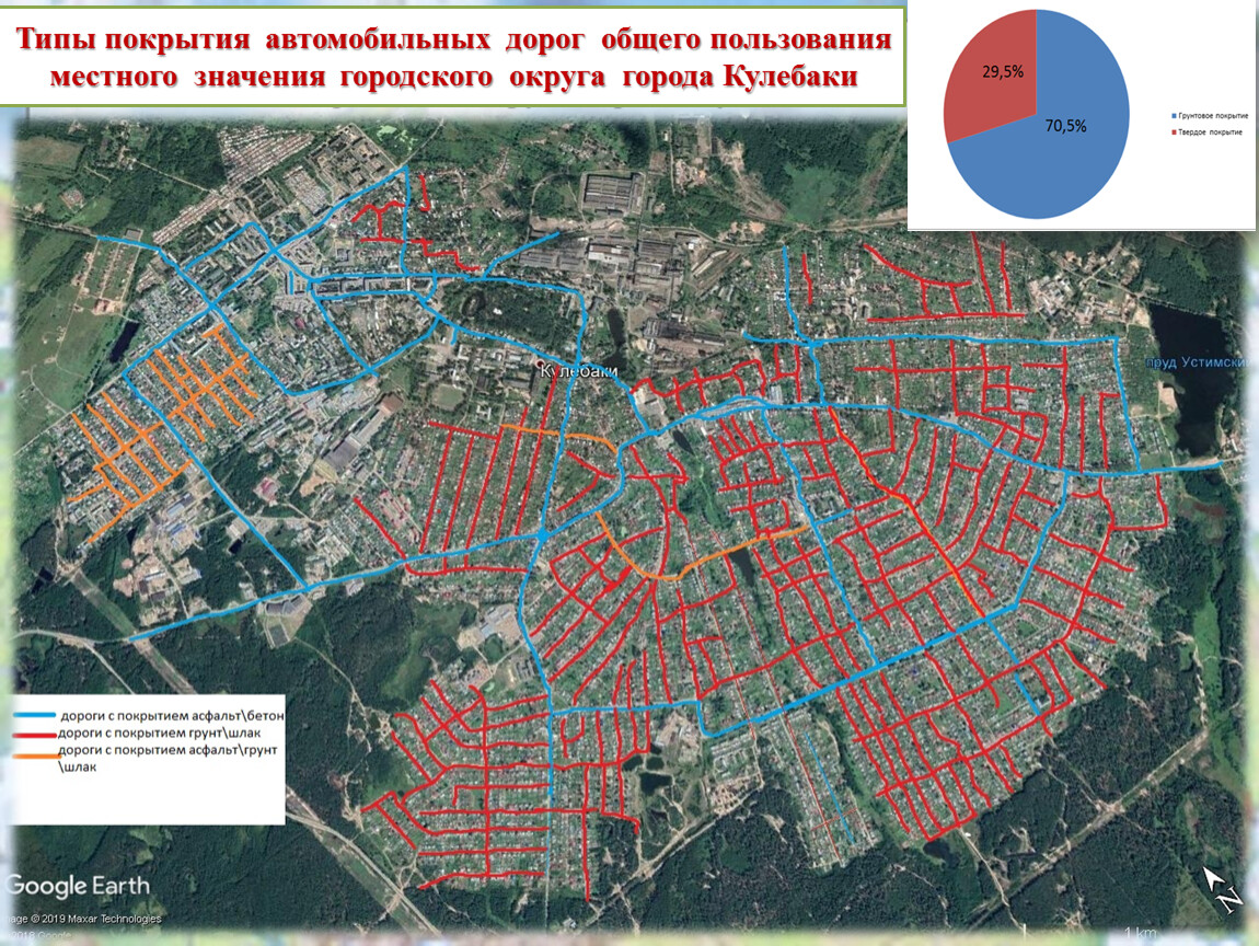 Типы покрытия автомобильных дорог общего пользования местного значения городского округа города Кулебаки