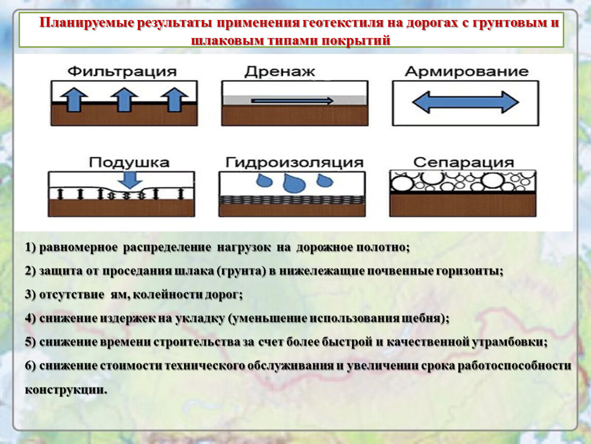 2) защита от проседания шлака (грунта) в нижележащие почвенные горизонты;