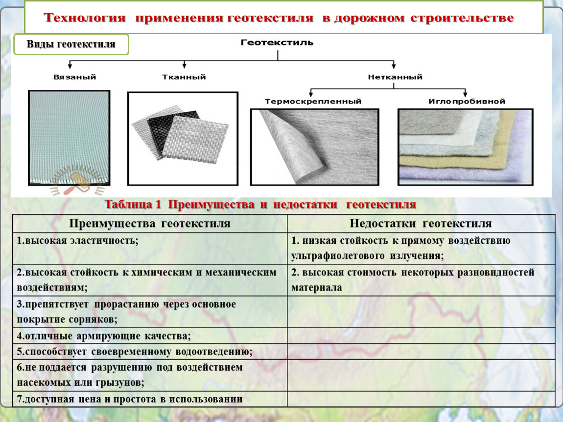 Преимущества геотекстиля | Недостатки геотекстиля |