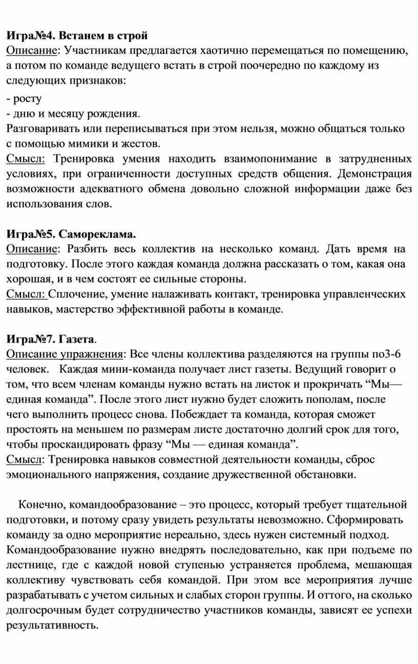 Игры на командообразование