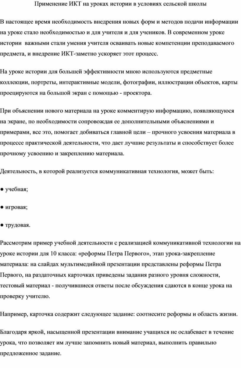 Применение ИКТ на уроках истории в условиях сельской школы