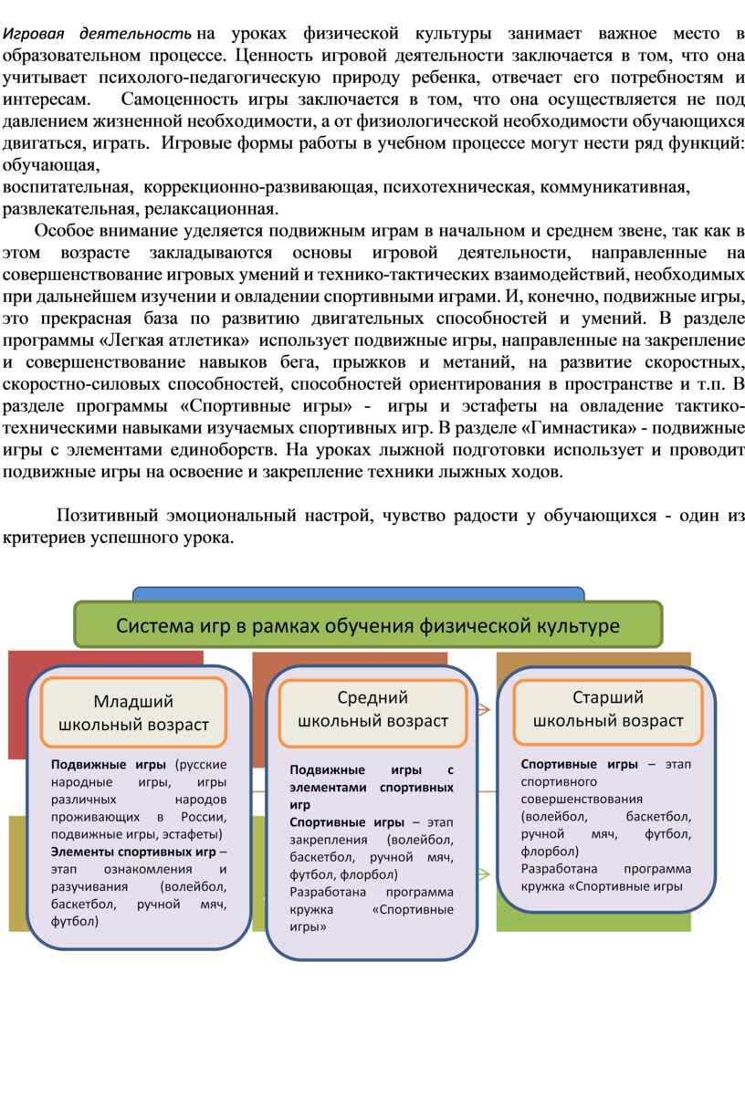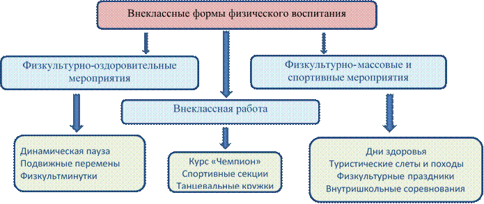 Большую роль играют внеклассные формы физкультурно-оздоровительной и спортивно-массовой работы. Они позволяют увеличивать объем двигательной активности и способствуют более полной реализации их индивидуальных способностей и двигательного потенциала.