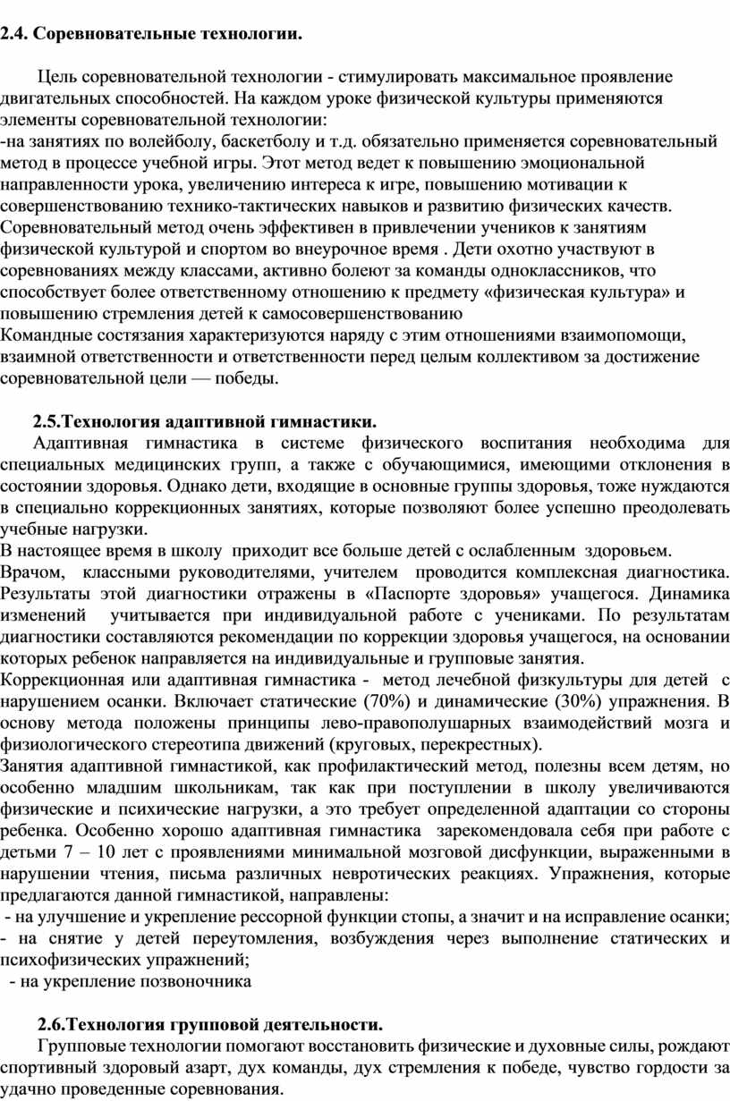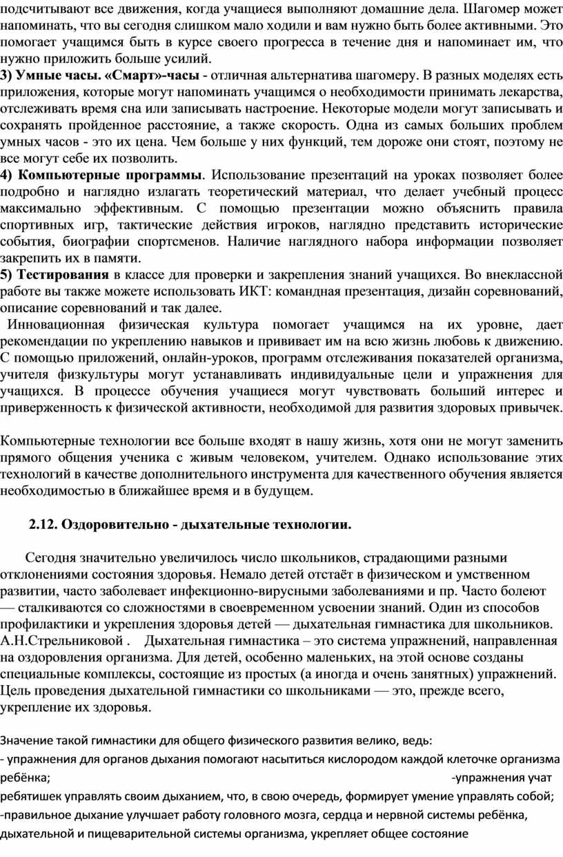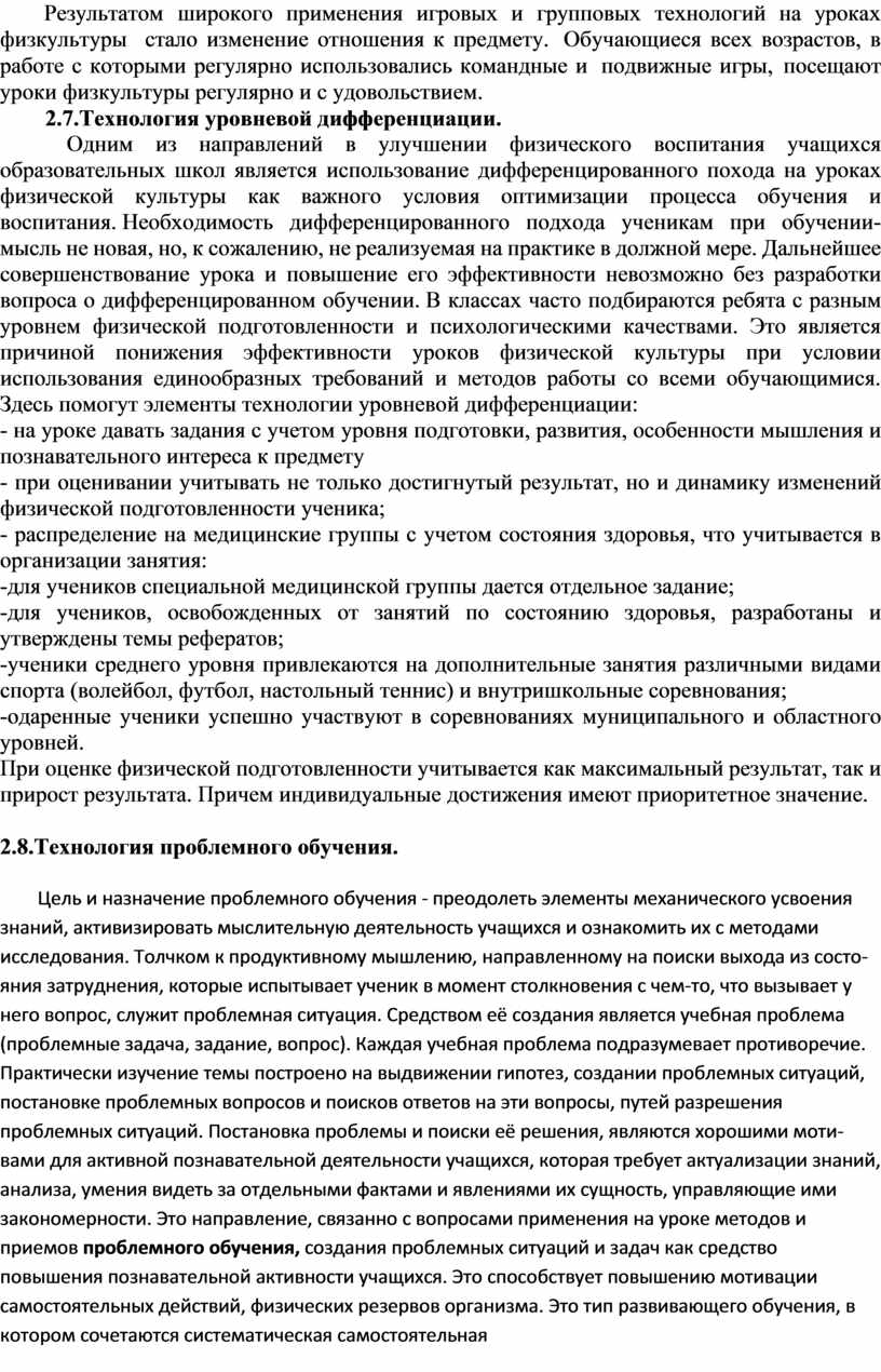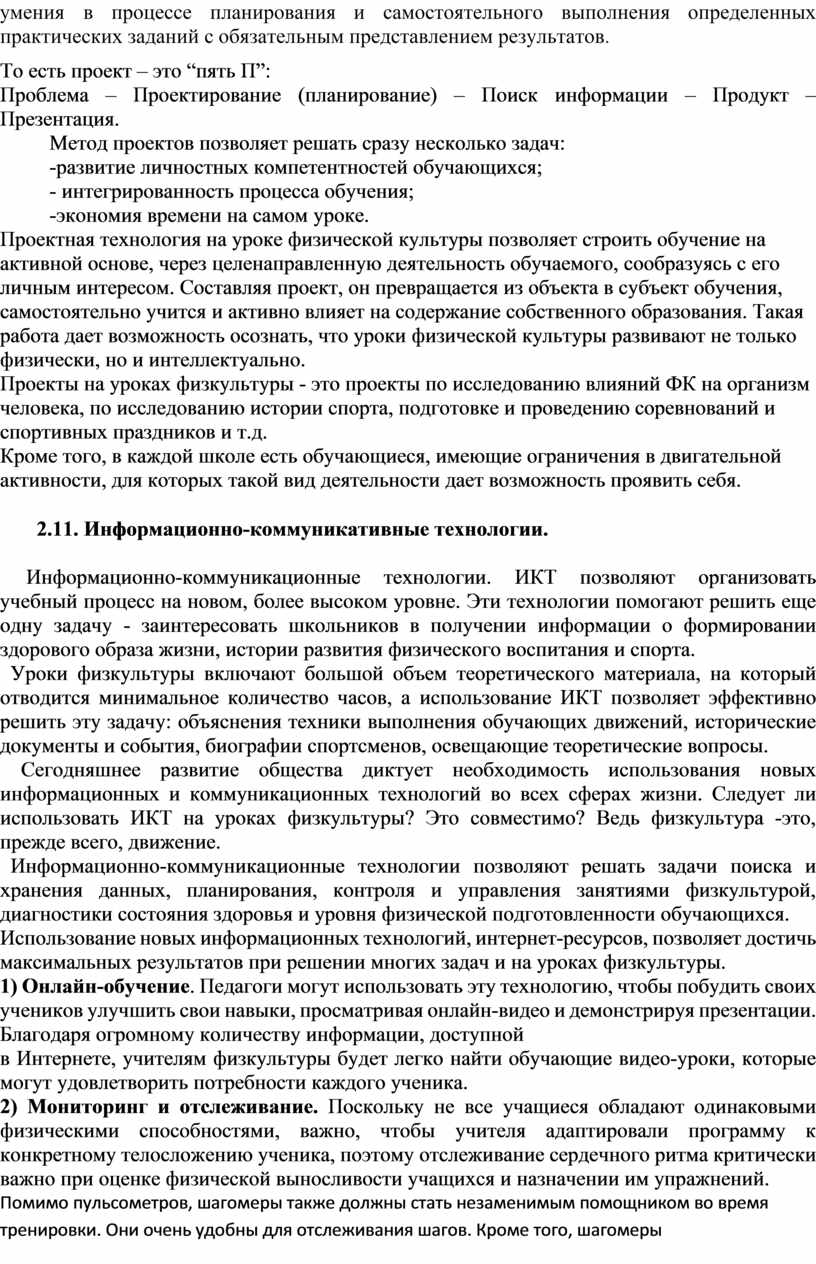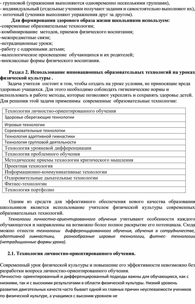 Раздел 2. Использование инновационных образовательных технологий на уроках физической культуры .