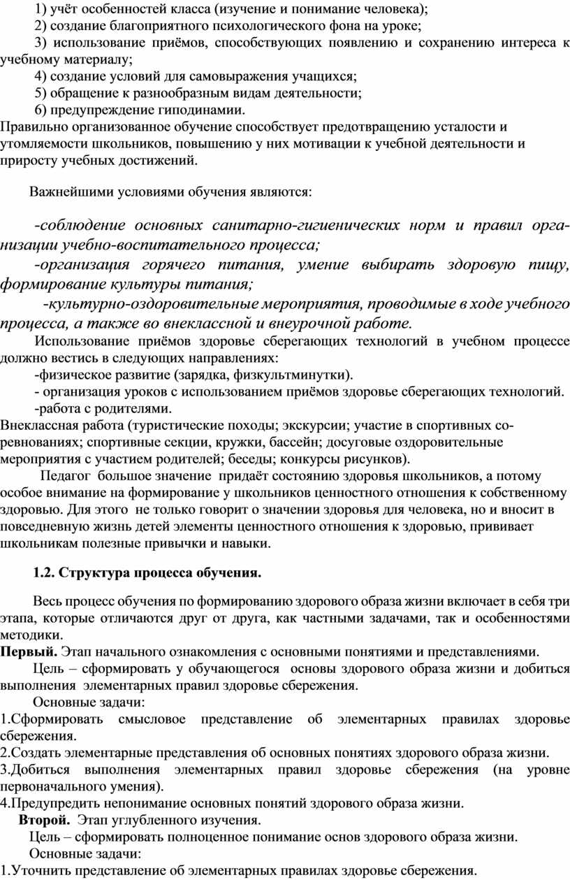 Весь процесс обучения по формированию здорового образа жизни включает в себя три этапа, которые отличаются друг от друга, как частными задачами, так и особенностями методики.