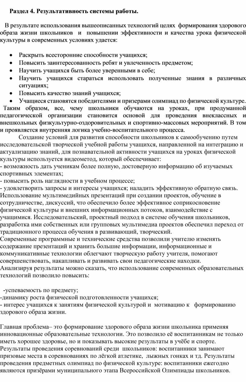 Раздел 4. Результативность системы работы.