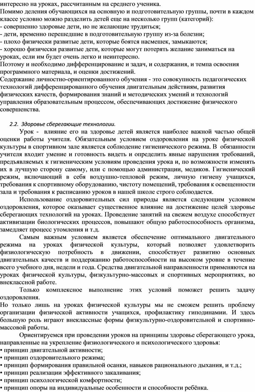 В соответствии с Законом “Об образовании” здоровье школьников относится к приоритетным направлениям государственной политики в сфере образования. Поэтому перед учителем физической культуры возникают вопросы: как организовать деятельность школьников на уроке, чтобы дать каждому ученику оптимальную нагрузку с учётом его подготовленности, группы здоровья? Как развивать интерес учащихся к урокам физкультуры, потребность в здоровом образе жизни? При решении этих вопросов возникают противоречия. С одной стороны, высокий уровень требований к физической подготовленности выпускников, с другой, - снижение интереса к урокам физической культуры.
