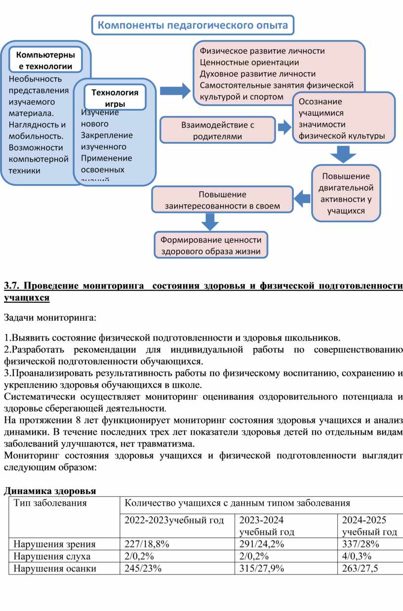 3.7. Проведение мониторинга состояния здоровья и физической подготовленности учащихся