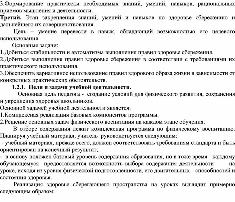 2.Добиться выполнения правил здоровье сбережения в соответствии с требованиями их практического использования.