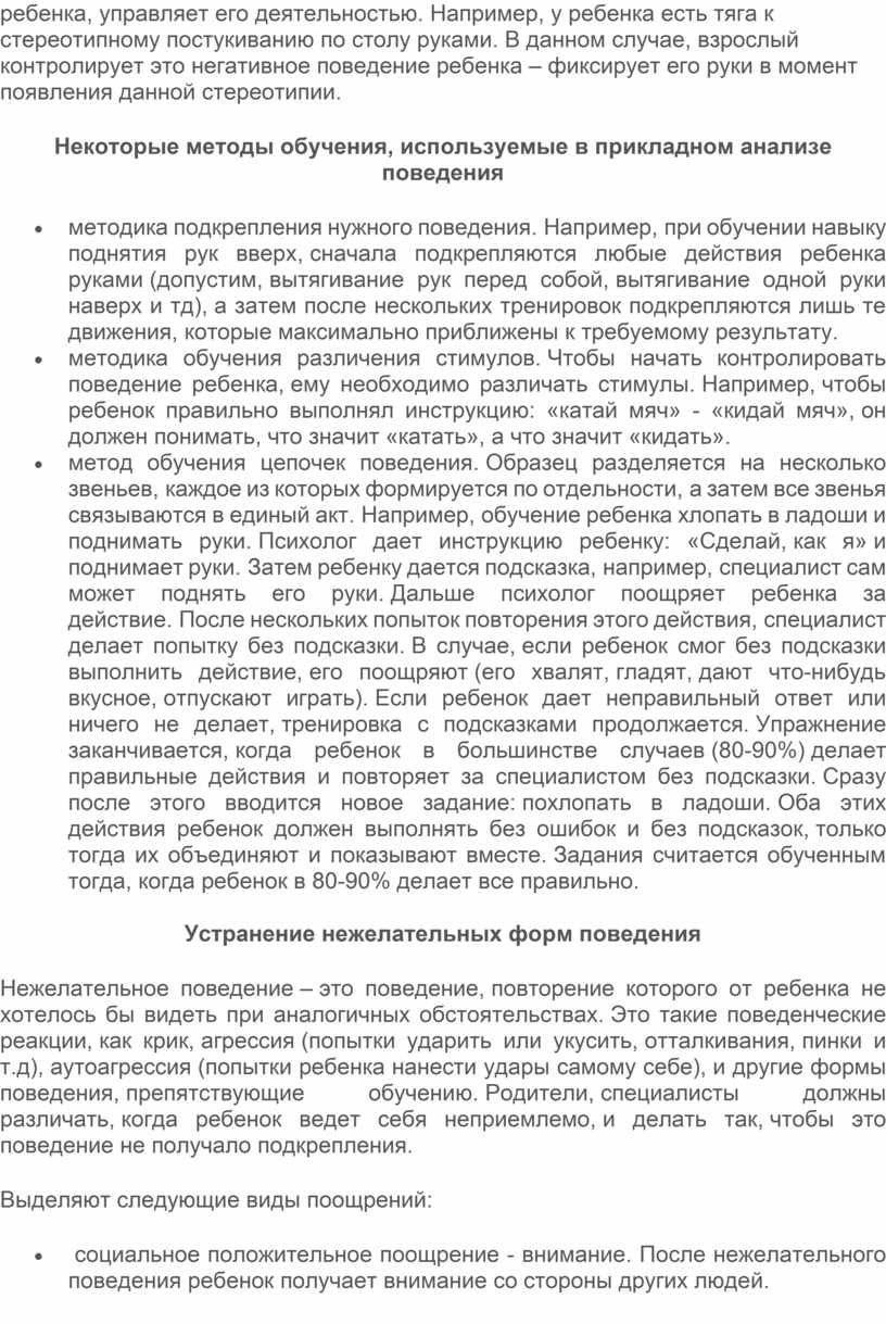 Некоторые методы обучения, используемые в прикладном анализе поведения