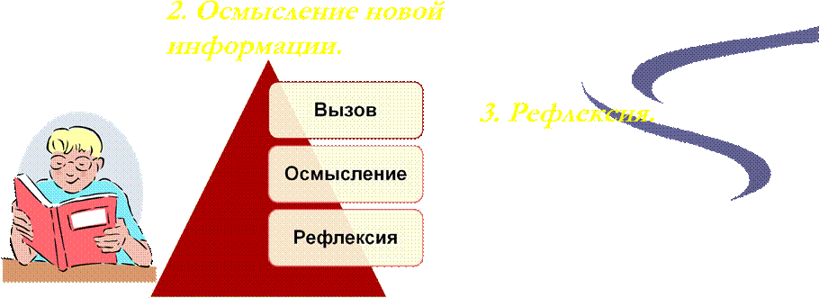 3.Рефлексия. На этой стадии текст опять представляет единое целое. Важно осмыслить этот текст. Формы работы могут быть различными: письмо, дискуссия, совместный поиск.