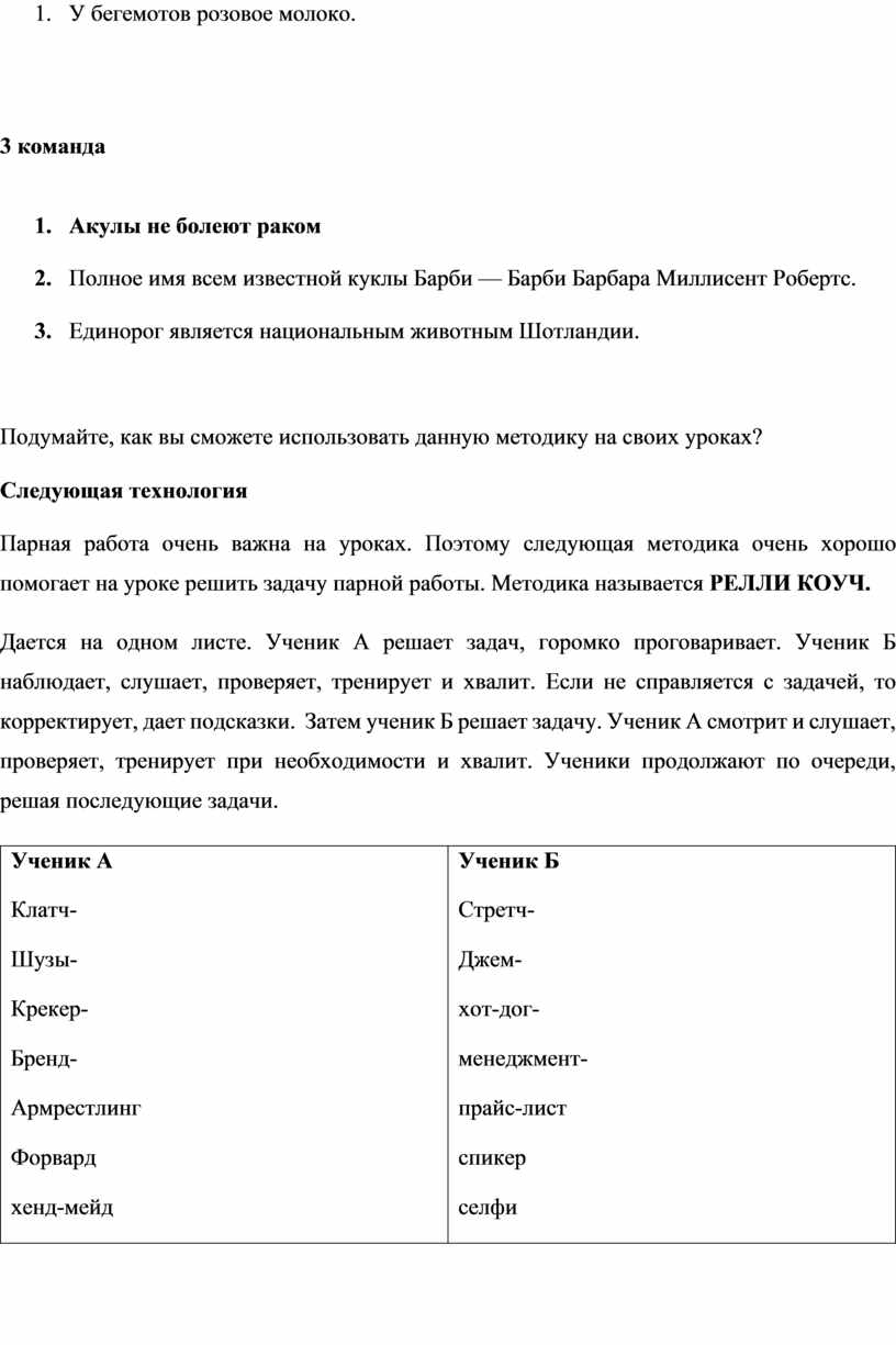 Парная работа очень важна на уроках. Поэтому следующая методика очень хорошо помогает на уроке решить задачу парной работы. Методика называется РЕЛЛИ КОУЧ.