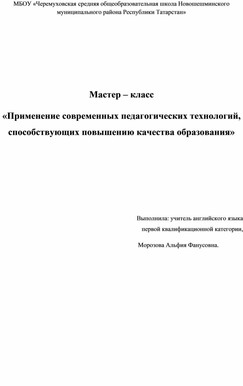Тема: “Применение современных педагогических технологий, способствующих повышению качества образования”